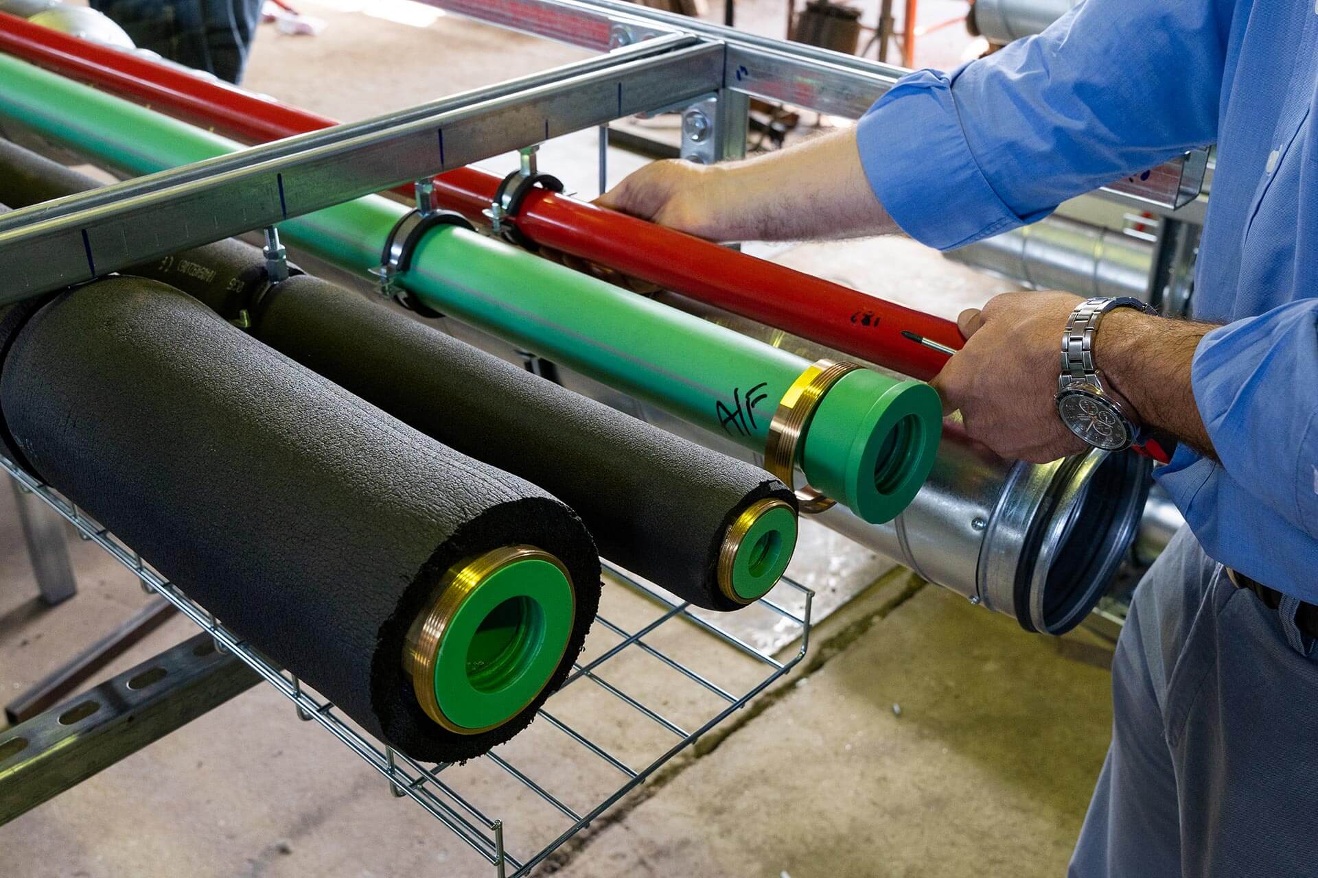 Esta solução passa pela industrialização de infraestruturas mecânicas/ elétricas/ hidráulicas realizadas em fábrica.