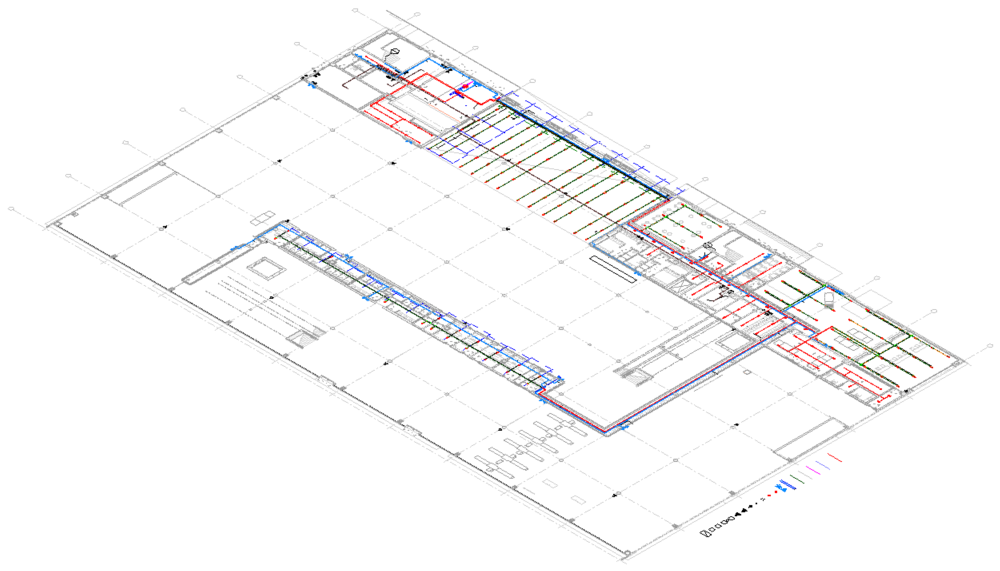 Além disso também nos é possível desenvolver para redes completas, kits pré-fabricados devidamente identificados de forma a que a rede possa ser mais facilmente assemblada em obra reduzindo tempo de execução em obra. Todo o trabalho de preparação/engenharia é realizado usando tecnologia BIM/Revit de forma a permitir detetar e corrigir eventuais constrangimentos/conflitos entre arquitetura/estrutura/especialidades.